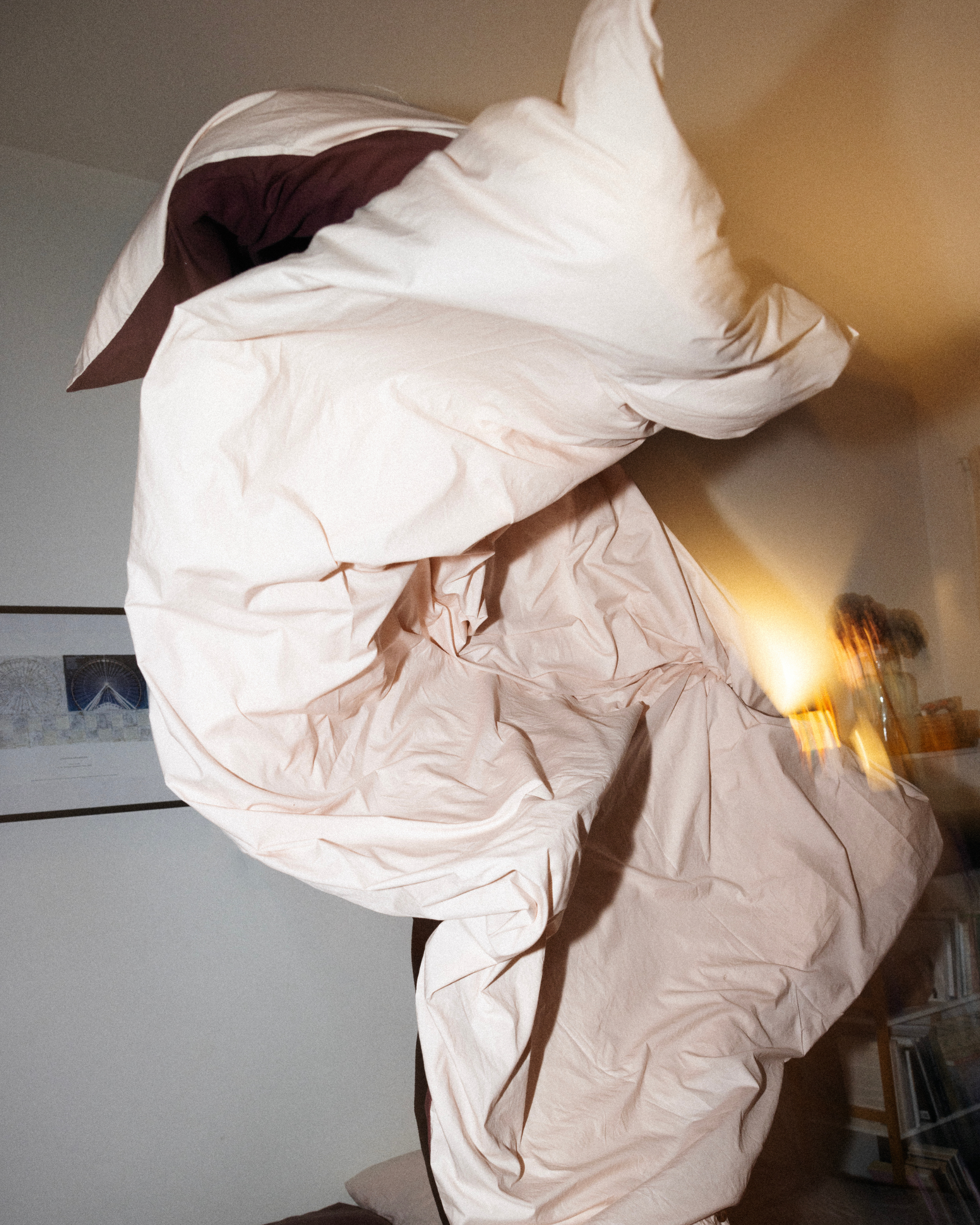I work exclusively with deadstock textiles, which means each piece is produced in limited quantities. This allows me to give new value to existing luxurious fabrics while minimising unnecessary waste.